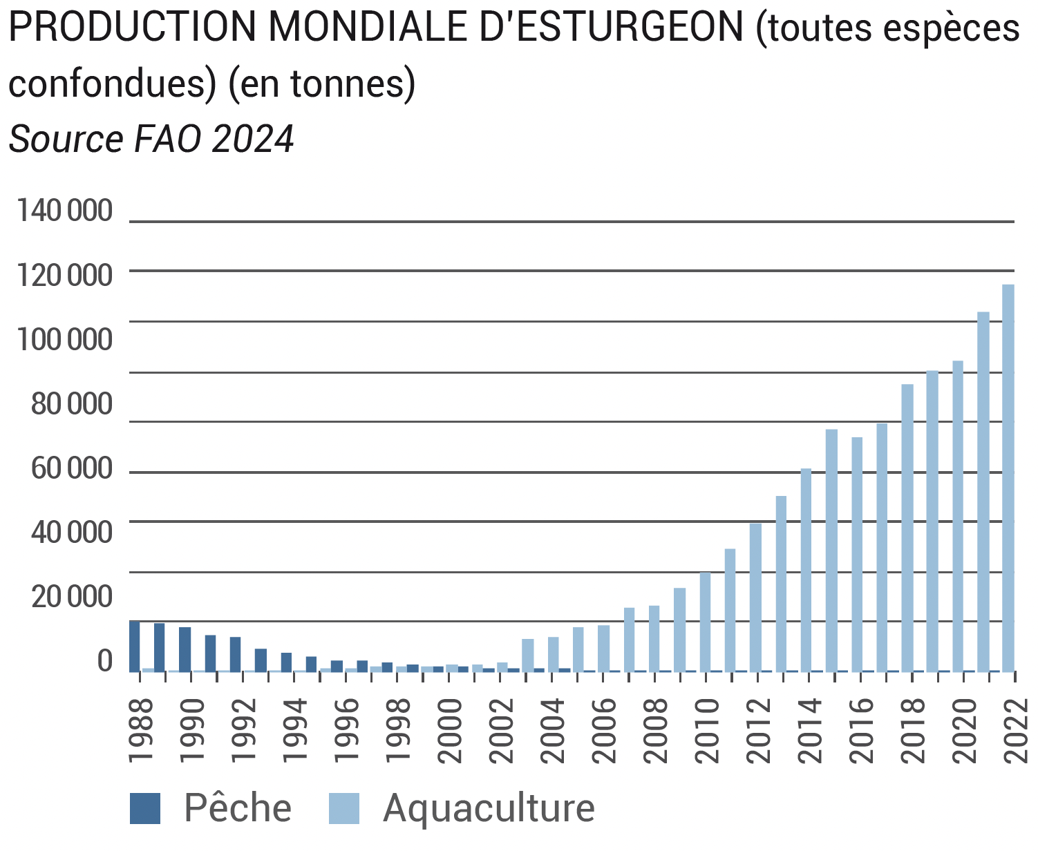 La faiblesse des apports mondiaux et le prix très élevé du caviar ont rendu l’élevage d’esturgeon économiquement rentable. La France est le troisième producteur européen d'esturgeon (après l´Italie et la Pologne) avec une production d’environ 331 tonnes en 2022. La Belgique ne produit pas d’esturgeon. Au niveau mondial, la Chine, la Russie, l'Arménie et l’Iran sont les principaux pays producteurs de caviar d’élevage.
